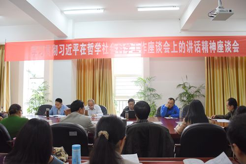 下午,我院在行政楼二楼会议室召开学习贯彻习近平总书记在哲学社会科学工作座谈会上的讲话精神座谈会。学院院长李春明、党委副书记黄天贵、副院长邓春生出席会议,思政部、艺术系、基础部等部门教师代表参加了座谈会。