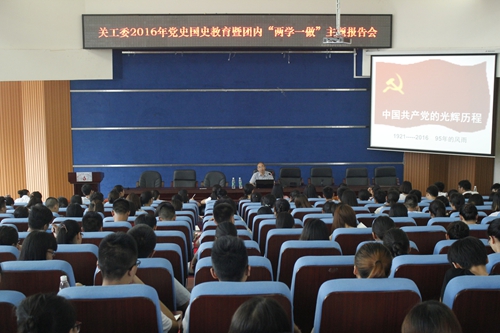 党的十八大以来,习近平总书记多次对加强党史国史的教育做出明确指示,希望广大青年听党话、跟党走。教育部关工委也出台文件要求各高校加强大学生党史国史教育,结合关工委文件精神及团内“两学一做”内容,6月22日下午,学院团委在学术报告厅举办了2016年党史国史教育暨团内“两学一做”主题报告会,并邀请学院党委副书记黄天贵同志担任主讲,讲述中国共产党95年的光辉历程,青马班全体成员及各系主要学生干部近400人聆听了报告会。