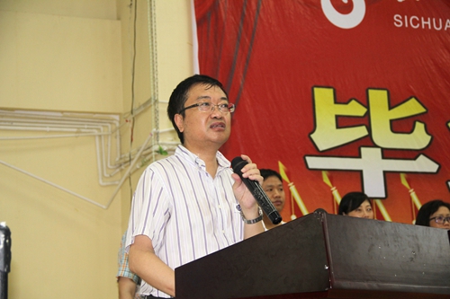 李春明院长向同学们表示了衷心的祝贺,对同学们三年前选择四川工商职业技术学院表示了感谢,希望同学们的选择是一生无悔的选择。李院长对同学们提出三点希望:坚持做正确的事;做一个有独立思想的人;善良比聪明更重要。最后,李院长鼓励大家,在今后的工作生活中,在遇到困难和迷茫的时候,请想起学校、想起老师和同学,母校永远是大家最坚实的后盾,大家一起奋力,必定会渡过难关。
