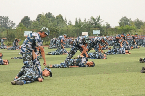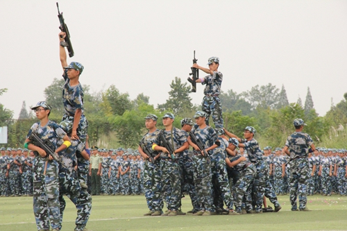 军训汇演在庄严的迎国旗仪式中拉开帷幕。军训各方队进行了分列式演练,嘹亮的口号响彻整个校园,经历了严格军事训练的同学们以飒爽的英姿、整齐的步伐展现了昂扬的斗志和蓬勃向上的精神。分列式后,军训团进行了快乐舞步放松操、男生军体拳、女生匕首术、棍术、反恐特种战术等五项表演。表演结束后,大会对本次军训的先进集体和个人进行了表彰,共表彰优秀教官9人,优秀指导员7人,优秀方队6个、军训标兵29人、标兵寝室24个;叠被子比赛中共有涂玉莲等6人获奖。