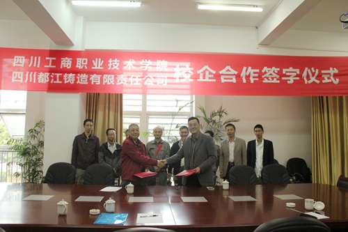在会上,副院长岳文喜首先对我院学生目前的就业情况进行了简要的介绍。金昌林总经理则介绍了四川都江铸造有限责任公司的情况,并提出希望通过校企合作来使企业进一步提高自身的能力。随后,双方就校企合作、学生实习、员工培训等方面进行了深入和愉快的交流,并在合作培养学生、建立相关专业学生校外实习基地以及企业员工培训等事项上达成一致。最后,副院长岳文喜代表我院与四川都江铸造有限责任公司总经理金昌林签署了校企合作协议。