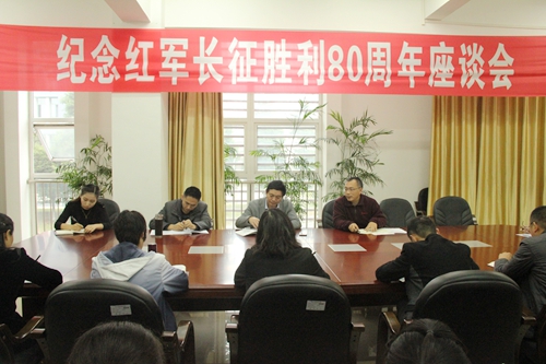 当天下午,学院分别组织教职工代表和学生代表召开了“弘扬长征精神从我做起”座谈会,学院党委书记管永林、副院长邓春生出席教职工座谈会,来自学院不同岗位的30余名教师代表参加了座谈会。座谈会伊始,邓副院长说到,长征精神是我们宝贵的精神财富,我们需要继承、传播和弘扬长征精神,通过今天座谈会的交流,促进我们更深刻的理解长征精神。随后,教职工代表们立足于自身工作,从多个方面、不同角度缅怀了革命先烈的丰功伟绩,阐述了自己理解的长征精神。党委宣传部部长丁思勇在发言中说到,红军在长征过程中以远大的理想、崇高的目标激励部队,并坚持党的正确领导,发扬敢于牺牲的革命精神,这是长征胜利带来的深刻启迪,我们需要在今后的工作中甘于奉献,继续传承长征精神。