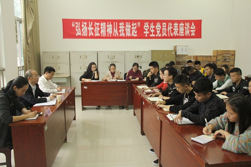 学院党委副书记黄天贵、副院长王开淮出席学生座谈会,倾听90后大学生们对长征精神的感受和体会,号召青年学子更要学习光辉榜样,从长征精神中汲取勇气和力量。