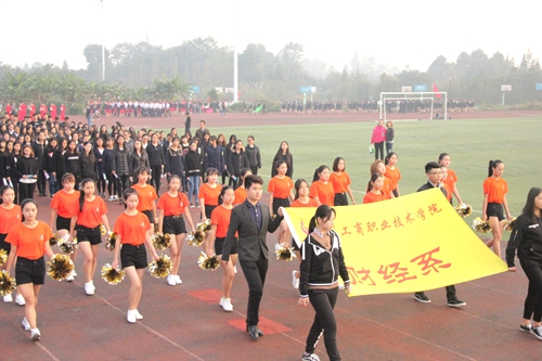 开幕式由副院长王开淮主持,入场式精彩纷呈,财经系队员手持财务单据、管理系队员的礼仪表演、空乘班的制服秀、酒食系的白大褂、机电系的机器人……各系方队充分体现了专业特色,让人目不暇接。