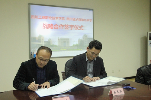 参观后在交流会上,双方就如何充分挥高校与普通高中共同培养应用型人才的优势,搭建中高职衔接“立交桥”进行了深入的探讨。学院岳文喜副院长与泸县九中唐刚校长,分别代表两校签订了战略合作意向协议。