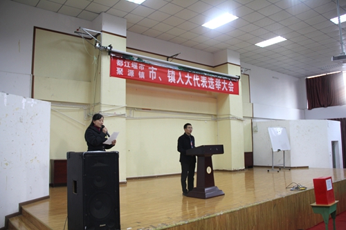 上午9时,选举大会正式开始,大会由王开淮副院长主持。工作人员宣读了市、镇两级人民代表正式候选人名单和都江堰市第十八次人民代表选举办法;经选民举手表决,先后通过了学校总监票员、监票员,总计票人、计票人等选举工作人员名单。经选举工作人员现场清点选民人数,主持人宣布到会选民符合法定人数,可以进行选举。工作人员当众查验并向选民展示了空票箱,在主持人介绍了选票填写方法后,总监票人、监票人、总计票人、计票人、师生选民依次投出庄严而神圣的一票。全体选民投票完毕,在监票人的监督下,两个投票点的选票集中进行清点,并当场密封专人分别送往聚源镇人大。