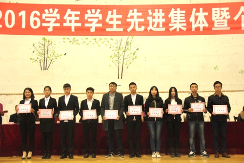 ,我院2015-2016学年度先进表彰大会在我院素质拓展馆举行。学院党委副书记黄天贵、副院长王开淮、邓春生等在家院领导以及有关部门的负责人出席了会议。