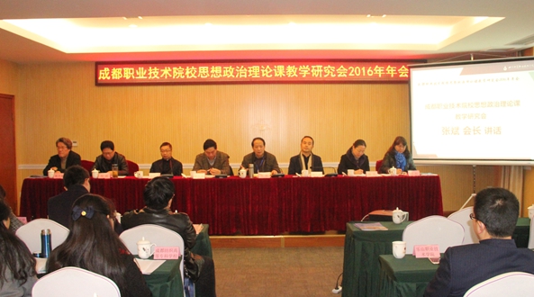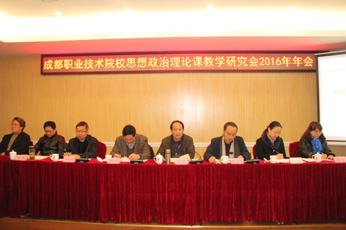 至18日,由我校承办的“成都职业技术院校思想政治理论课教学研究会2016年年会”在我校翰海博雅培训学院顺利召开。川北幼儿高等师范专科学校党委书记张斌、雅安职业技术学院党委书记张大凯、四川航天职业技术学院党委书记袁枚等18所高职院校领导及思政课教师代表共计70余人参加此次会议,我校党委书记管永林、院长李春明出席会议。