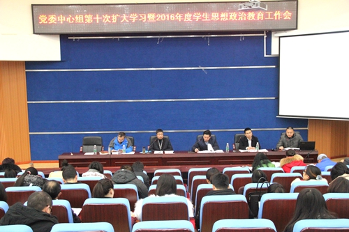上午,学院党委中心组在学术报告厅召开2016年党委中心组第十次扩大学习暨年度学生思想政治教育工作会。学院党委书记管永林、院长李春明、副院长王开淮、邓春生出席会议。学院全体中层干部、全体辅导员和专业教研室主任及相关部门工作人员参加了会议,会议由党委书记管永林主持。