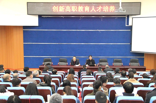 ,学院特邀国家示范性院校专家、浙江机电职业技术学院院长丁金昌教授到校开展了“创新高职教育人才培养”讲座,校领导及全体中干、专兼职教师到场聆听了此次讲座。