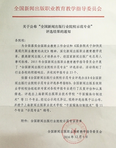 日前,我校轻工工程系印刷技术专业在全国新闻出版职业教育教学指导委员会开展的“全国新闻出版行业院校示范专业”评选活动中,获得“示范专业”称号。
