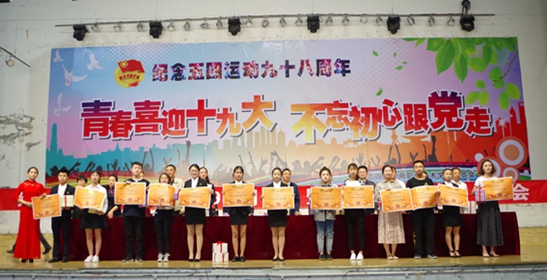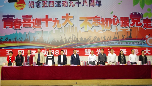 日下午,我校纪念五四运动98周年暨先进表彰大会在素质拓展馆召开。院长李春明、党委副书记黄天贵、副院长王开淮、党委宣传部部长万辉君、学生工作处副处长聂文俊和各系分管学生工作的负责人以及1000多名团员青年参加了此次表彰大会,大会由团委副书记杨婧主持。