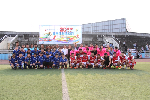 随着环校健身跑活动和男子七人制足球挑战赛第一轮两场比赛的开始,体育活动月系列活动正式吹响了号角,王开淮副院长为足球赛开球并合影。