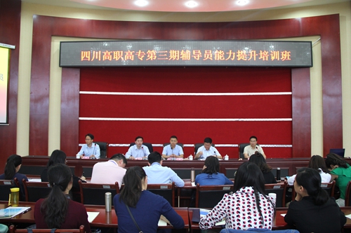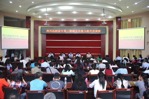 ,由我校承办的2017年四川省高职高专辅导员能力提升第三期培训班在行政楼一楼会议室开班,莅临本次开班仪式的领导有四川省教育厅陈胜副处长,高职高专专委会理事长、四川交通职院党委书记王东平教授,我校党委书记管永林教授,副院长王开淮副教授,高职高专专委会副理事长彭谦副教授,参加培训的学员来自我省23所高职高专院校,共计67名辅导员。我院部分中层干部和全体专兼职辅导员参加开班仪式。