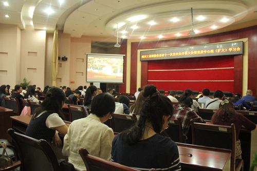 观看开幕大会后,学校党委书记管永林主持召开了党委中心组(扩大)专题学习会。