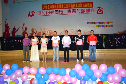 晚,泸州永丰浆纸股份有限公司短训班结业晚会在我校素质拓展馆举行。学校副院长王开淮,继续教育中心主任梁正席等莅临晚会。王开淮副院长首先为晚会致辞,他对圆满完成学业的短训班学员,表示热烈的祝贺,也代表学校向三个月来为学员们的成长倾注了无数心血和智慧的老师们表示深深的敬意和感谢。