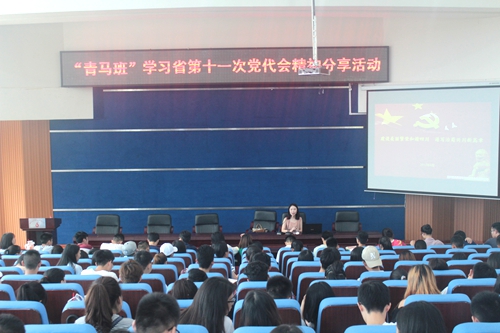 ,省第一期“青马工程”学员代表、西华大学工商管理学院在读研究生李思琪来到我校,就省第十一次党代会精神有关内容与我校第八期“青马班”学员进行了分享交流。