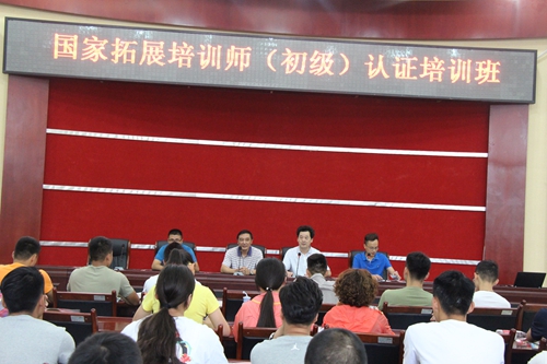 6 月 20 日 ,由我校体育与拓展训练中心承办的国家拓展培训师(初级)认证培训开班仪式在行政楼一楼会议室举行。学校副院长岳文喜及体育与拓展训练中心相关负责人出席开班仪式。岳院长首先对来自省内的36名学员表示欢迎,并简要的介绍了我校拓展训练的发展历史及在省内的影响力,最后岳院长希望每位学员能够在在为期3天的培训中相互交流,学有所获。