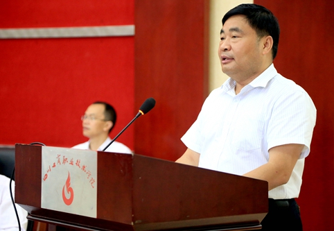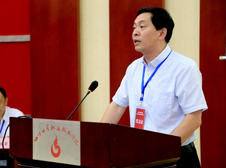 省经信委工会主席尧中林同志代表主管部门工会组织作了讲话。尧中林同志在讲话中强调,今后五年是学校建设和发展十分关键的时期,学校将全面实施“十三五”事业发展规划,全面启动创建优质高职院校的工作,大家肩负的担子光荣而又艰巨。希望学校广大教职工和各级工会组织认清学校面临的新形势,统一思想,深入学习贯彻习近平总书记一系列重要讲话精神,坚定不移地走中国特色社会主义工会发展道路;进一步激发广大职工的积极性,在推动学校建设中充分发挥教职工主力军作用;以改革创新精神加强工会自身建设,强化责任意识和开拓意识,不断增强工会组织的凝聚力和战斗力,创造更加辉煌的成绩。