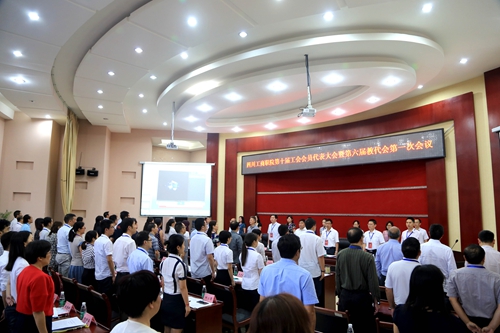 7月6日上午,我校第十届工会会员代表大会暨第六届教代会第一次会议在行政楼一楼会议室隆重开幕。成都市教科文卫体工会主席胡艳桃同志、省经信工会主席尧中林同志、学校党委书记管永林同志、院长李春明同志、党委副书记兼纪委书记黄天贵同志出席大会并在主席台就座,主席台就座的还有大会主席团全体成员。全体正式代表及学校全体中层以上干部、上届校工会委员、离退休干部代表和民主党派人士代表作为列席代表参加会议。会议由大会执行主席万辉君同志主持。