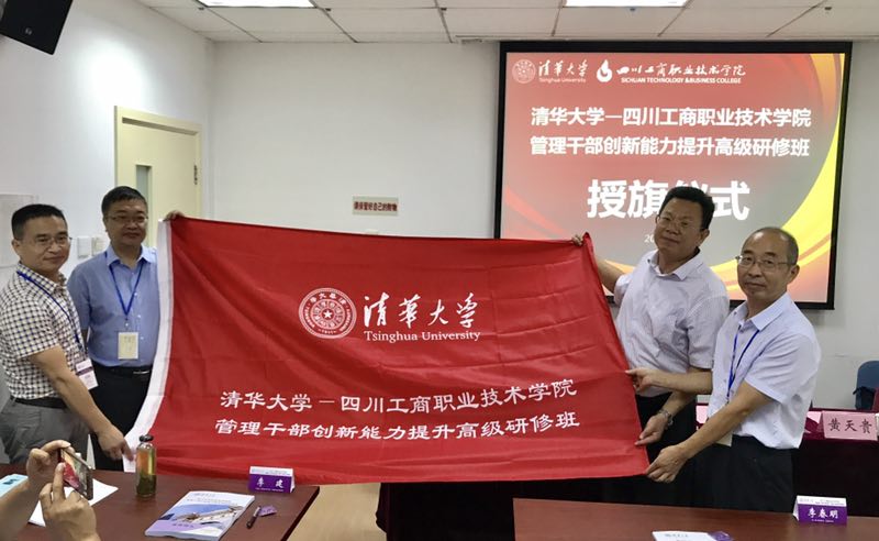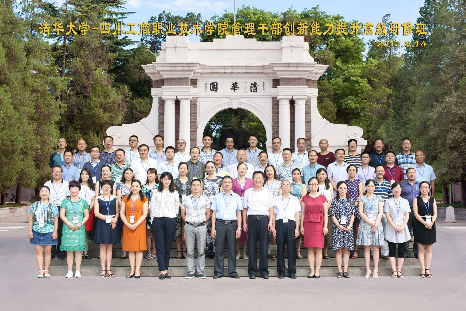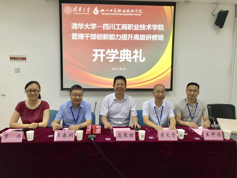 2017年8月14日上午,四川工商职业技术学院管理干部创新能力提升高级研修班在清华大学继续教育学院举行了隆重的开班典礼。清华大学继续教育学院院长高策理,我校院长李春明、党委副书记黄天贵、副院长王开淮以及我校52名中层干部参加开班典礼。