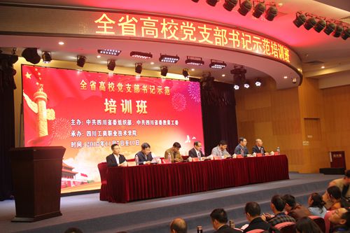 11月8日上午,由中共四川省委组织部、中共四川省委教育工委主办,我校承办的2017年全省高校党支部书记示范培训班开班典礼在我校所属的翰海博雅培训学院多功能会议室举行。省委组织部副巡视员鲜仕荃、省委教育厅副巡视员王嵩建、省委组织部组织二处处长袁海晗、省委教育工委、省教育厅组干处调研员荣飞 、我校院长李春明、党委副书记黄天贵、副院长王开淮出席本次开班典礼。来自全省110所高校的218党支部书记参加了开班典礼。开班典礼由省委组织部组织二处处长袁海晗主持。