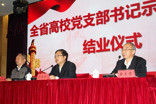 11月10日上午,我校承办的全省高校党支部书记培训班结业典礼在我校所属的都江堰翰海博雅培训学院举行。我校院长李春明、党委副书记黄天贵、继续教育部主任梁正席出席结业典礼。全省110所高校的218党支部书记参加了结业典礼。结业典礼由党委副书记黄天贵主持。