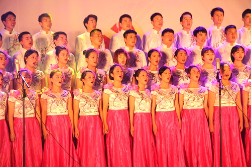 机电系合唱队气势磅礴地演唱了《没有共产党就没有新中国》、《黄河大合唱》