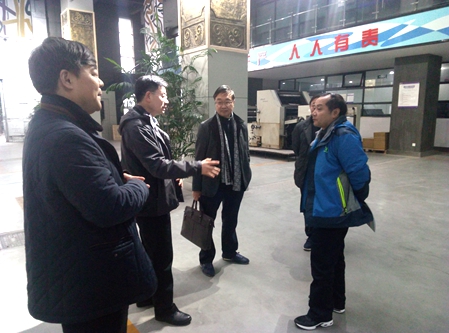 2017年12月25日下午,四川大学出版社有限责任公司王军社长一行莅临我校,在李春明院长的陪同下参观了我校轻工工程系印刷与包装理实一体教学中心。在参观过程中,王社长与李院长、轻工工程系主任余勇、党总支副书记李华进行了深入交流。