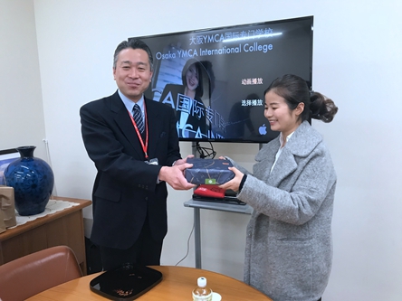 当天上午,邓院长一行赴大阪YMCA学校进行参观考察,日本YMCA学院国际部冈本卓也主任、教务主任片冈千贺子、温望月主任等五人对考察组一行进行了热情的接待。YMCA的领导和老师们首先带领考察组对学校的教学设施设备、学生教学情况、活动设施和场馆等进行了详细的参观,并对在校的外国留学生学习情况进行了详细考察。随后,双方在学校小会议室进行了仔细而深入的交流。会议期间,冈本首先表达了对考察组一行的热烈欢迎,然后详细介绍了YMCA的详细情况;邓院长进行了回应,并介绍了四川工商职院的基本情况及学校国际化办学的思路;经管系蔡登火主任介绍了我校旅游管理专业国际合作的思路与现状;经管系副主任兼职业经理人学院院长江国才询问了日方商科办学情况与经验,并与日方进行了深入交流;旅游专业主任刘洋就有关YMCA的专业设置、课程体系、师资选拔、师生国际认证、资金来源与国际化建设等方面与日方进行了详细交流。最后邓院长作了总结性发言,表达了与日方进行国际合作的强烈意愿;日方就国际合作做出了强烈回应,期待双方合作。下午4点半,沟通会议结束,双方约定下次日方到都江堰确定双方国际合作的具体事宜。