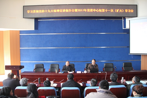 党委书记管永林在会上领学了《省委十一届二次全会公报》、《2018年中央经济工作会议公报》,并结合省委经济工作会议和学校工作,进行了解读。管书记就学习党的十九大精神作了讲话。他强调,学习贯彻习近平新时代中国特色社会主义思想和党的十九大精神,要深入领会贯穿其中的坚定信仰信念、鲜明人民立场、强烈历史担当、求真务实作风、勇于创新精神和科学方法论,坚持用这一思想武装头脑、指导实践、推动工作,让十九大精神在学校开花结果、落地生根。管书记还就当前学校的中心工作和党建工作提出了希望和要求。
