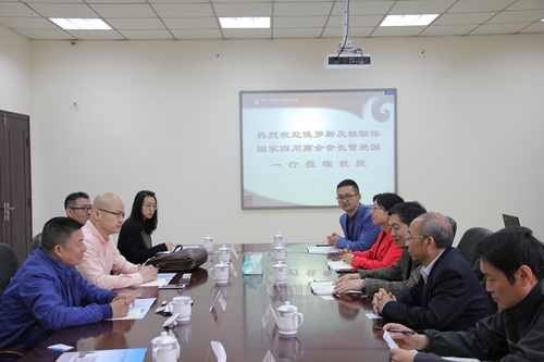 4月13日,俄罗斯及独联体国家四川商会会长曾爱国一行7人到我校考察和洽谈合作。学校党委书记管永林、党委副书记黄天贵、党政办公室、国际交流中心及相关系部等部门负责人热情接待了来访客人。