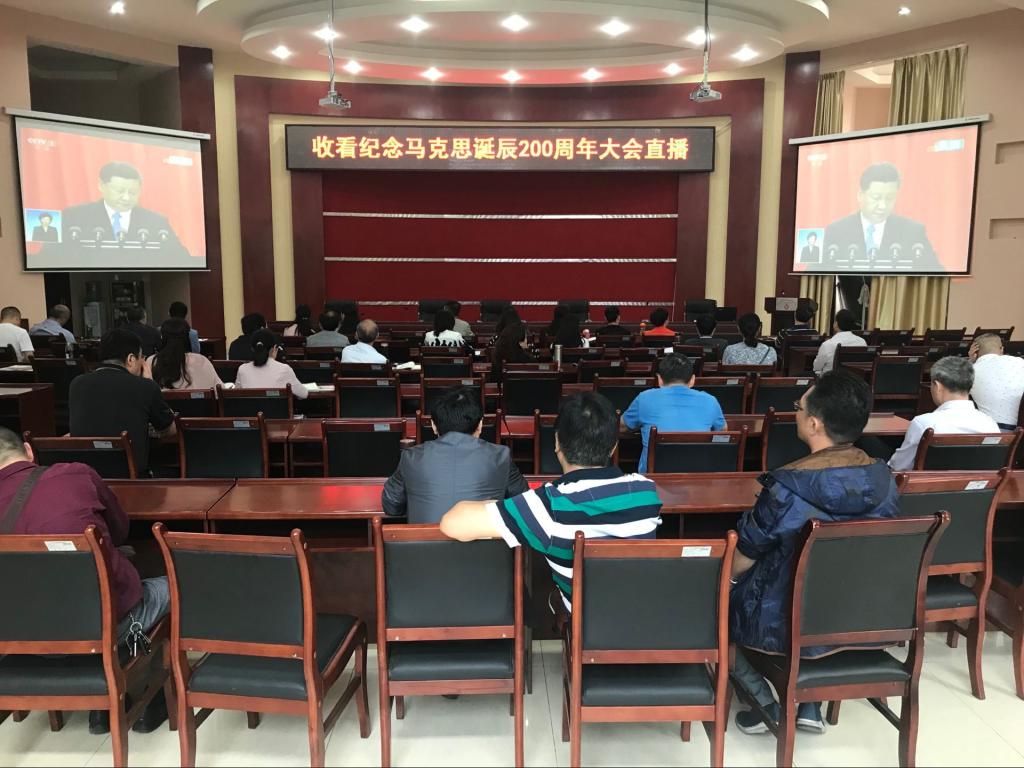 5月4日上午10时,纪念马克思诞辰200周年大会在人民大会堂举行。中共中央总书记、国家主席、中央军委主席习近平出席大会并发表重要讲话。我校党委组织全校坐班人员和思政部全体专兼职教师在行政楼一楼会议室收看大会实况,积极关注习近平总书记重要讲话,深切缅怀马克思和他的伟大贡献。