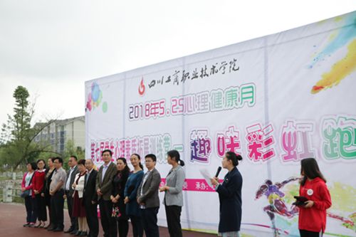 下午,我校2018年5.25心理健康月系列活动,第七届学生心理素质拓展训练营——趣味彩虹跑活动在学校青春文化广场起跑。校党委书记管永林,党委副书记黄天贵,心理健康教育中心、校团委、学生处负责人,各系书记和学生心理干事老师们出席了起跑仪式。仪式上各系代表队精神抖擞得喊出队伍口号蓄势待发,校党委书记管永林宣布活动开始并扣响起跑指令枪。
