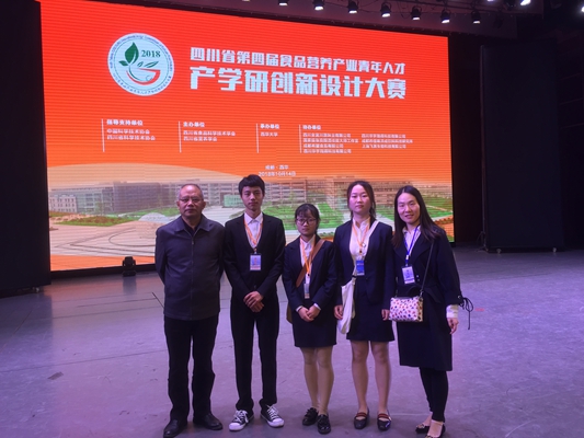 本次大赛主办单位为四川省食品科学技术学会、四川省营养学会,参赛队伍为四川省各大高校、科研机构和食品企业。酒食系张彩老师带领生物16330班秦中维、食检16327班肖玉寅、设计艺术系艺术17336班廖林组成了“妙豆生花”项目组参赛,产品为花生豆干;余彩霞老师带领生物17335班余鑫龙、张汶静,精化17305班刘怡莲组成了“舒亦美”项目组参赛,产品为青稞饼干。共有200余支参赛队伍于9月提交了产品项目计划书,大赛组委会对项目创新性、可行性、产品图片等进行了初评,最终共150支队伍进入复赛。我校两支队伍均顺利进入复赛,值得一提的是我校是唯一进入复赛的高职院校。