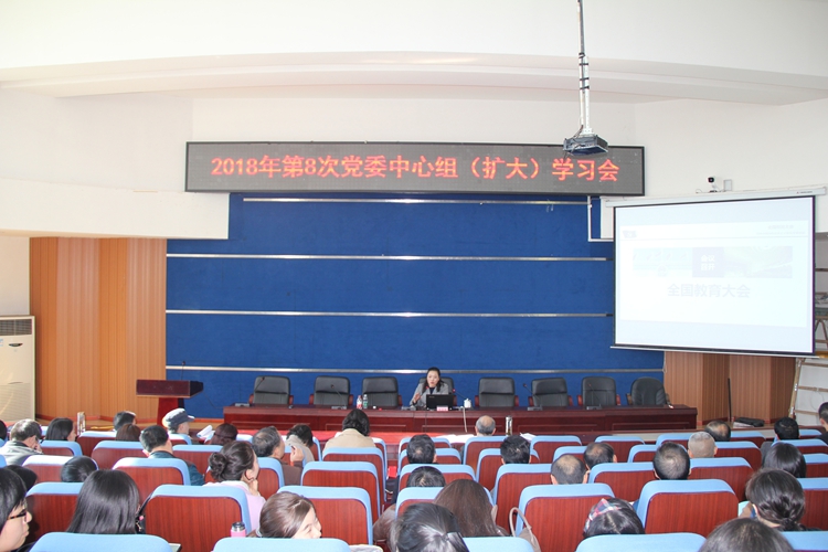 10月25日下午,我校党委在学术厅召开第8次党委中心组(扩大)学习会,学习贯彻全国教育大会精神。学校中层以上干部、全体辅导员和思政部教师参加学习会。学校党委书记黄天贵教授主持讲座。