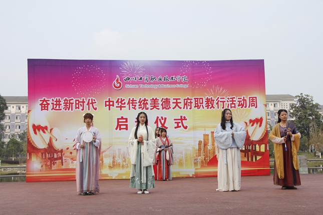 向晓岚在启动仪式上作了讲话。她说,通过这次天府职教文化节活动,将会在我校营造更加浓厚的传承弘扬中华优秀传统文化的氛围,进一步增强师生的文化自觉和文化自信,推动我校高质量发展,提升我校职业教育服务发展的贡献力和社会影响力,又能给我校广大师生提供一个展现自我的平台。她希望同学们更加了解并深刻认识到中华传统文化的重要性,激发民族责任感,对于大学生自身的全面健康发展和与他人、社会的和谐发展都具有十分重要的现实意义。