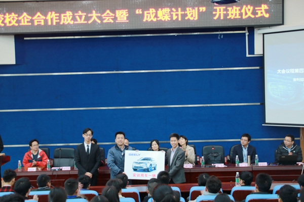 12月13日下午,我校与世界500强企业之一的浙江吉利汽车有限公司的校校企合作大会暨“成蝶计划”开班仪式在我校学术报告厅举行。吉利控股集团成都领克工厂人力资源部副部长赵登蓉率北京吉利学院对外交流与合作部等部门领导出席了开班典礼,我校邓春生副院长、对外交流与合作处、机电工程系等部门负责人及机电工程系专业教师、“成蝶计划”班全体学生参加了开班典礼。