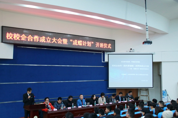 首先,吉利控股集团人力资源中心招聘与校企合作经理廖勇对校校企合作“成蝶计划”项目进行了介绍。“成蝶计划”订单班是通过校企合作双方共同考核,从机电系2018级学生中选拔出96名优秀学生组成吉利成蝶计划精英1、2班,从2017级学生中选拔出52名优秀学生组成吉利成蝶计划精英3班,是我校与吉利汽车、北京吉利学院进行校校企深度合作的一个良好开端。为了更好地推进项目合作,浙江吉利汽车有限公司、北京吉利学院和我院三方组建了“成蝶计划”项目组,在整个人才培养过程中,共同制定培养方案、人才标准和课程设置,完成人员选拔和项目质量评价,探索校校企合作在应用型人才培养、产学研领域,共同开展人才培养、精准扶贫等领域开展深度产教融合,探索学校、企业、学生“三赢”的校校企合作途径。
