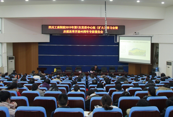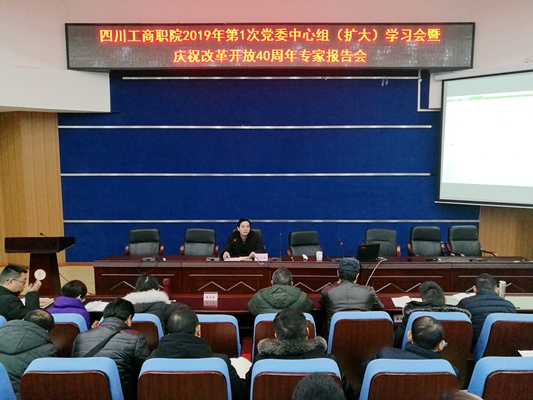 1月3日下午,我校在学术报告厅举行了2019年第1次党委中心组(扩大)学习会暨“庆祝改革开放40周年”专题报告会。会议邀请中共四川省委党校政治学教研部的喻海翔教授作了题为《不经艰难困苦,何以玉汝于成——庆祝改革开放40周年》的报告。校党委书记管永林主持报告会,学校院级领导、中层干部、在职教职工党员、各系部教研室主任、思政课专兼职教师、专兼职辅导员、团委学生会干部及青马班学员近300余人参加了会议。