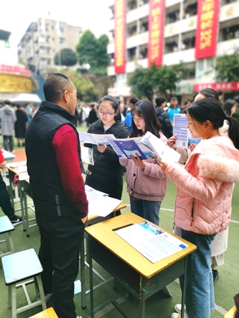 又是一年单招季。我校2019年单独招生宣传工作于今年1月全面铺开。目前,正值单独招生考生选报学校的关键时期,也是招生咨询的高峰时段。学校招生就业处根据全省各地区单独招生校园巡展安排,统筹组织,精心策划,从今年1月21日至3月8日,先后派出了20余名招生宣传人员分赴成都、泸州、绵阳、乐山、眉山、南充、宜宾、达川、巴中、自贡、遂宁等地区开展招生宣传咨询工作,所到中学覆盖200多所。