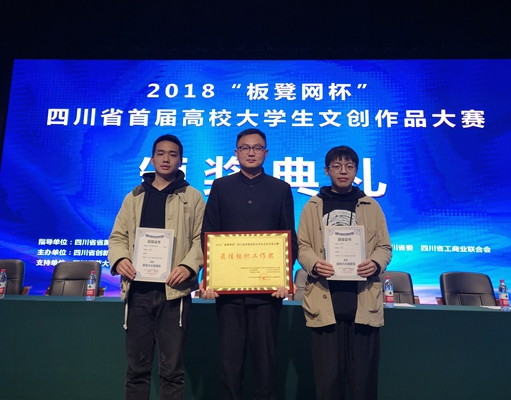 3月20日,2018“板凳网杯”四川省首届高校大学生文创作品大赛颁奖仪式在四川师范大学狮子山校区学术厅举行。我校在此次大赛中荣获“最佳组织工作奖”,两项学生作品获得“最受观众喜爱作品奖”。