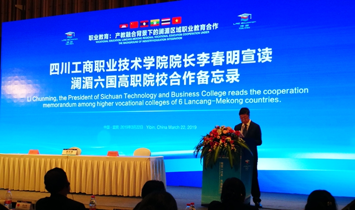 3月22日,2019年中国“澜湄周”子活动——“澜湄区域对话·教育合作论坛”在宜宾举行。我校院长李春明教授应邀出席本次论坛并在分论坛“产教融合背景下的澜湄区域职业教育合作论坛”任嘉宾发言。