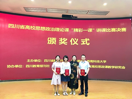 四川省高校思想政治理论课“精彩一课”讲课比赛是由四川省教育厅主办的、全省所有高校思想政治理论课教师参加的高水平讲课比赛,每三年举办一次,是全省思想政治理论课教师风采展示,互相学习,共同提高的重要平台。此次比赛,全省共330余名教师参加初赛,99名教师进入决赛。我校参赛选手凭借前期认真的准备,扎实的基本功、赛场上出色的表现,获得了佳绩。