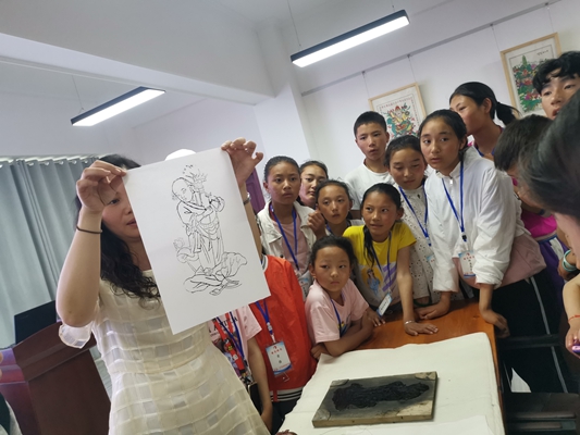艺术系刘静瑜老师教同学们制作绵竹年画