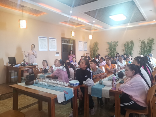 经济管理系郑林老师带同学们在茶艺实训室体验中国茶文化