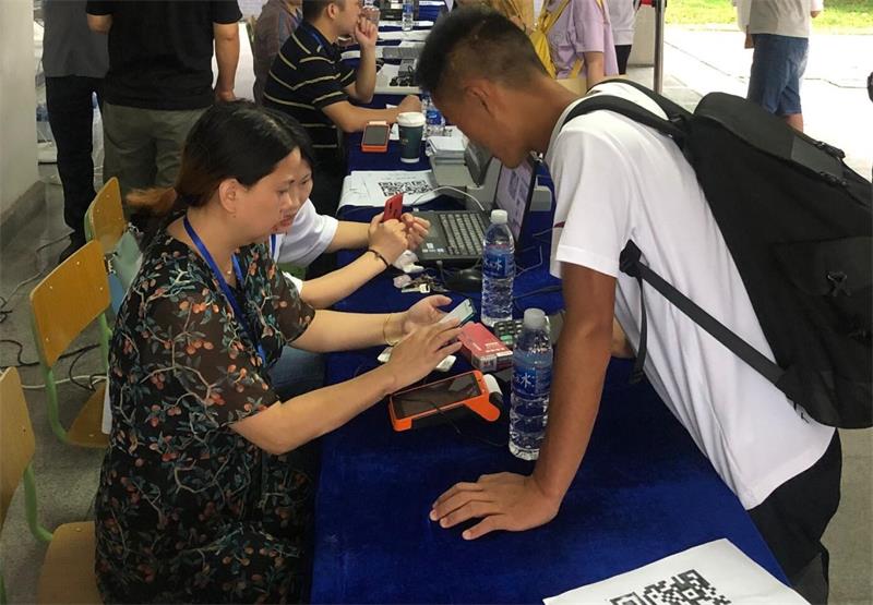 迎着八月的骄阳,8月29日下午我校迎来了2019级新生入学报到,面对自由、个性的“00后”新生,学校开启了智能化手段服务新生报到,家长、同学的接受度非常高。新生通过手机扫描二维码,选择微信、支付宝、银联卡多种方式,前后仅需一分钟,就能完成所有缴费手续以及寝室床位选择,极大的提高了新生报到的处理速度,实现了新生报到智能化。