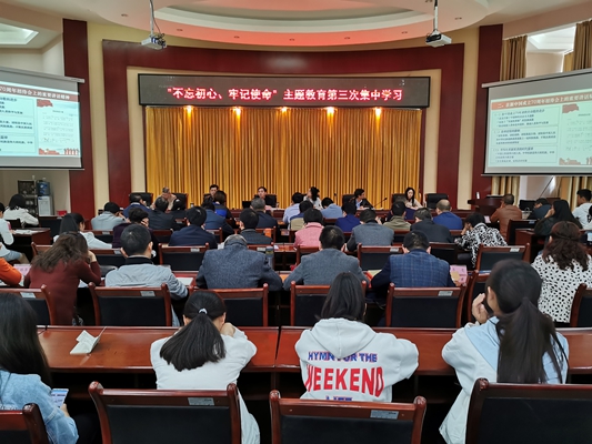 10月15日下午,我校举行“不忘初心、牢记使命”主题教育第三次集中学习研讨。省委教育工委第三巡回指导组成员、省教育科学研究院教育发展研究所干部卢同庆同志到会指导。校领导班子成员、全体中层干部、基层组织负责人代表、党代会代表、党员代表、学生代表共107人参加集中学习会。
