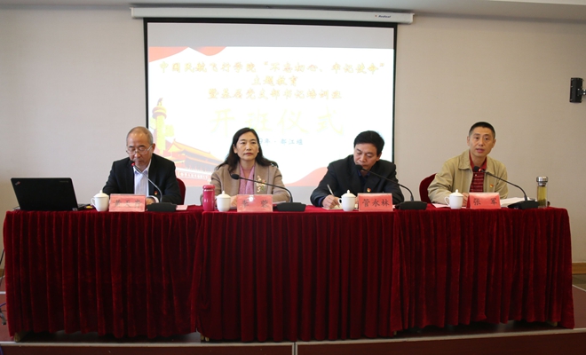11月11日,由中共中国民航飞行学院党委组织部主办、四川省高校青年马克思主义者培训基地承办的中国民用航空飞行学院“不忘初心、牢记使命”主题教育暨基层党支部书记培训班开班仪式在我校翰海博雅培训基地学教楼6506教室举行。中国民航飞行学院党委常委、组织部长、党校校长李蓉,组织部副部长张军,“青马基地”主任、学校党委书记管永林,“青马基地”副主任、学校党委副书记黄天贵出席并主持开班仪式。开班仪式由学校黄天贵副书记主持。