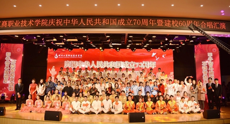 为庆祝我校建校60周年,11月15日晚,我校举办的“庆祝中华人民共和国成立70周年暨建校60周年育人成果汇报演出”在多功能二厅举行。校党委副书记黄天贵、党委委员组织部部长李建以及校友代表和各系部师生代表一起观看了演出。